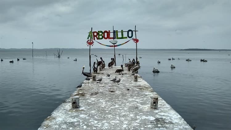 En el muelle de Los Cántaros, Nicolás se alista para amarrar su embarcación. Es originario de una de las pequeñas comunidades enclavadas en el margen de la laguna de Alvarado formada por no más de 30 familias a las que solo se ingresa y sale en lancha.