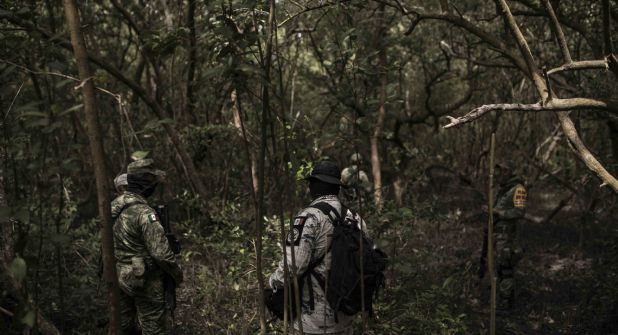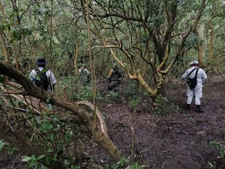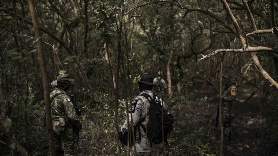 Las siluetas de hombres uniformados se asoman entre las raíces del bosque de mangle, apenas iluminadas por el sol que se filtra en la copa de los árboles, el ruido se pierde con el viento del norte que sopla al mediodía.