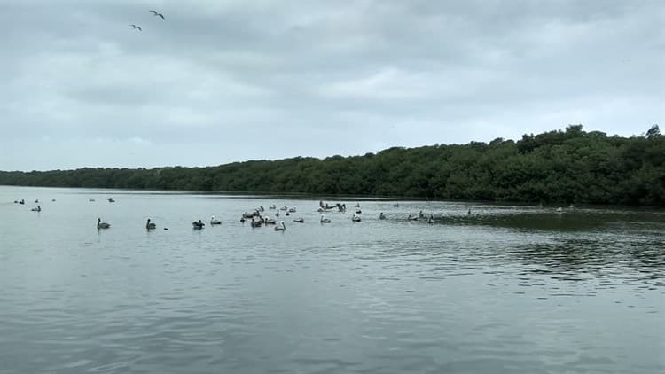 El trayecto muestra un paisaje que se refleja en el espejo del agua, entre el verde de las copas de los mangles y el azul de las nubes que se extiende al horizonte. El sitio es el último santuario del Manatí en Veracruz.