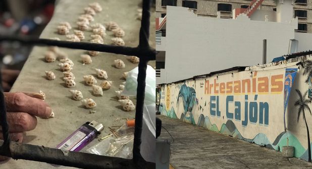“Trabajo más la concha y el caracol que otra cosa. Voy haciendo la mercancía que me hace falta y poco a poco me voy surtiendo. El material que utilizamos se lo compramos a proveedores, personas que viven a la orilla de la playa que juntan sus caracoles, sus conchas, igual como si fuera un agricultor”, dice.