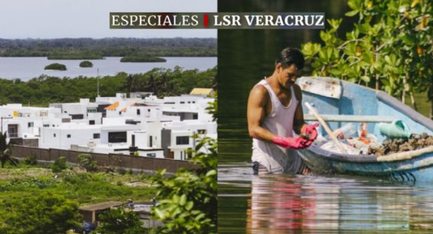 El paisaje verde con casas pequeñas de concreto y techado de lámina de zinc que se ubican a un costado de la Laguna de Mandinga, contrasta con los lujosos fraccionamientos que se edifican alrededor de este pequeño pueblo costero.