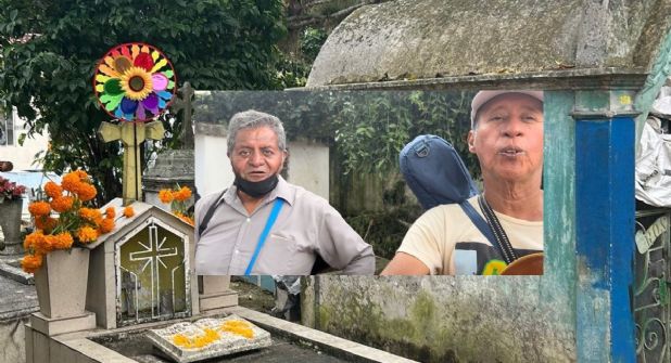 Margarito y Gonzalo son amigos desde hace una década. Desde esa época son compañeros de cantada, normalmente están en el centro de Xalapa, pero este sábado acudieron al panteón Palo Verde, donde aprovecharon para ganarse ingresos extra.