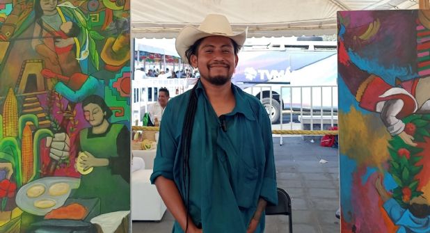 Sin embargo, el pintor de 32 años reconoce que retratar las culturas mesoamericanas, ha sido difícil. “Somos de bajos recursos, y pues cuando tengo la oportunidad de comprar un paquete de óleo, lo compro y me pongo a pintar con óleo”, explica.