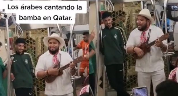 “Para bailar la bamba se necesita un poco de gracia, un poco de gracia y otra cosita, ay, arriba y arriba, arriba y arriba, arriba iré, yo no soy marinero, por ti seré, por ti seré”, es el fragmento que los qataríes corean junto con Irving en el metro de Doha.
