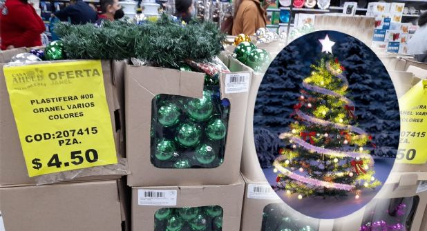 Las series de luces varían en costos, van desde los 100 pesos hasta los 600 pesos, incluida Casa Ahued en donde antes se podrían adquirir productos desechables a bajo costo. Los moños o piñas para el árbol se venden desde 20 o 30 pesos hasta los 250; además, el pie de árbol para pino se vende desde 90 y hasta los 250 pesos; incluso, si se adquiere por metro en una tienda de telas.