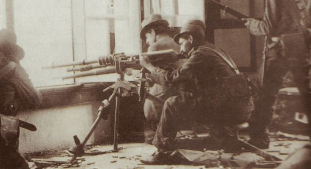 Otros más, la mayoría civiles, disparaban desde las ventanas de las casas que tenían línea de visión hacia las zonas capturadas.