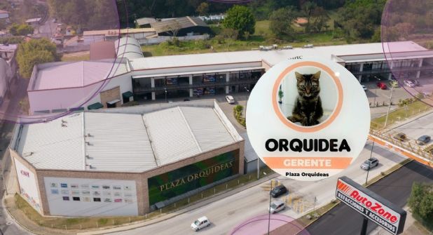 El respeto de Plaza Orquídeas hacia la gerente felina es tal, que dentro de la plaza se encuentra una placa con la foto de la gatita, debajo de su foto se puede leer que es la gerente del lugar, y más abajo, una breve descripción acompaña la placa.