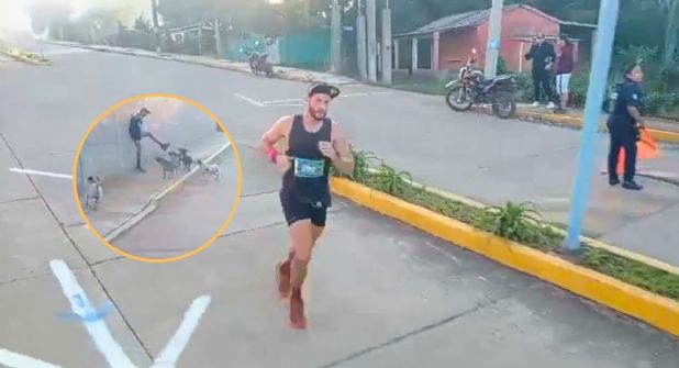 Por suerte, los mismos policías vieron que el deportista estaba en aprietos, y se echaron de reversa con su unidad mientras tocaban el claxon, con la intención de asustar a los perros y alejarlos. Esto sirvió, ya que el grupo de canes se dispersaron y dejaron en paz al corredor, quien perdió cerca de 30 segundos de la ventaja que llevaba, pero continuó corriendo hasta la meta.