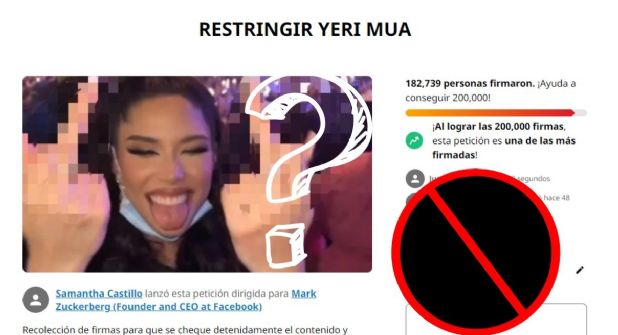 “Recolección de firmas para que se cheque detenidamente el contenido y tomen cartas en el asunto sobre lo que hace y muestra esta persona en su página llamada ´Yeri MUA´, hacia sus espectadores y hagan que lo cambie, ya que sus vídeos son compartidos por mucha gente y no sabemos a manos de quién puedan llegar”, se lee en la petición.