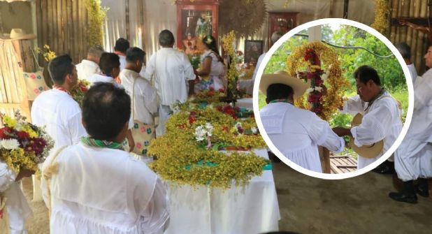 Los representantes totonacas colocaron, como cada año, una ofrenda dentro de las instalaciones del parque temático Takilhsukut, sede del Centro de las Artes Indígenas en Papantla.