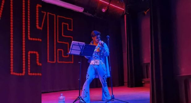 VERACRUZ, VER. - En el concurrido Parque Juárez, una poderosa voz masculina emerge de una bocina, llenando la atmósfera con su resonancia, sorprendiendo a transeúntes, pues lo que parecería ser el sonido de un disco del legendario "Rey del Rock" es, en realidad, una actuación en vivo de Antony Alan, un talentoso joven xalapeño. Dotado de un tono de voz impresionantemente similar al del icónico cantante, Elvis Presley.