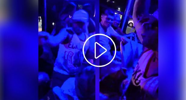 La gente a bordo enseguida comienza a animar con aplausos y chiflidos para que el joven continúe bailando. A modo de “striptease”, el bailarín toma a un pasajero para bailarle de frente, e incluso, vierte una cerveza sobre ambos.