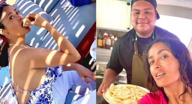 COATZACOALCOS, VER.- ¡Arriba los jarochos! Compartió la internacional actriz veracruzana, Salma Hayek, en una fotografía que subió a su cuenta oficial de Instagram al encontrarse con un chef “paisano” del sur de Veracruz, durante sus vacaciones por México.