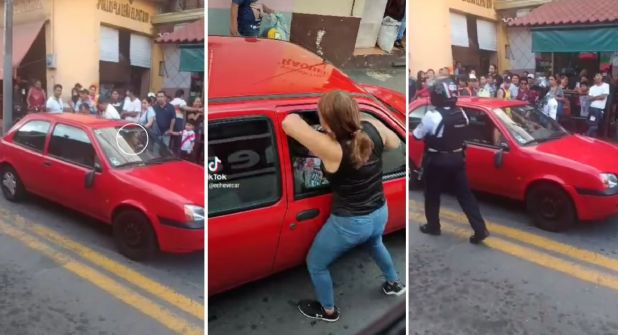 Según se puede apreciar en las imágenes y videos compartidos en grupos de Facebook de la zona de las Altas Montañas de Veracruz, la mujer engañada logró alcanzar a su pareja, quien iba acompañado de la presunta amante en un coche rojo. Sin dudarlo, ella comenzó a atacar y golpear el parabrisas y las ventanas del vehículo, hasta que logró que uno de los cristales se bajara y procedió a agredir a la otra mujer.
