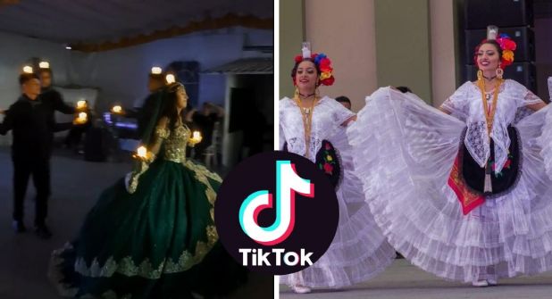 VERACRUZ, VER. - En medio de la conmovedora celebración de quince años, una joven sorprendió a sus invitados al elegir una tradición folklórica sobre la música moderna. La protagonista de la noche eligió como vals el desafiante baile "La Bruja", un son jarocho caracterizado por su típico zapateado y un nivel de dificultad que incluye llevar un vaso con una vela encendida sobre la cabeza.