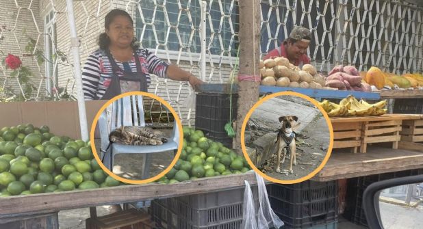 La publicación fue acompañada de cuatro fotografías en donde se ven a los comerciantes con diversas frutas que ponen a la venta, pero también a su perrito con pechera amarrado a la sombra de un árbol y su gato atigrado durmiendo sobre una silla, lo que se ganó el cariño y admiración de usuarios de Facebook.