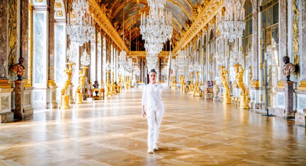 En la siguiente imagen se ve a la veracruzana recorrer parte del Palacio de Versalles portando la llama olímpica. La estrella de cine fungió como relevo de la competidora ecuestre Laure Guilhaume.