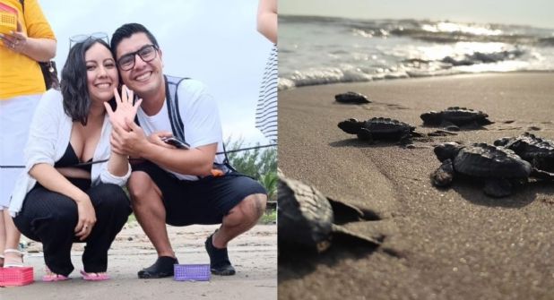 XALAPA, VER.- La liberación de tortugas bebés en el campamento de la asociación civil Vida Milenaria, en el norte del estado de Veracruz, se convirtió en el escenario perfecto para esta peculiar propuesta de matrimonio. Las playas de Teoculutla son consideradas de las más bonitas del estado, y este joven no dudó en convertirlo en el lugar que será recordado por ambos para toda la vida.