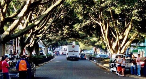 "La ciudad teni´a su “tu´nel del amor” en la calzada Diego Leño, un corredor con árboles de la variedad “Laurel de la india”, los ejemplares fueron castigados cuando se colocaron arriates reducidos; el paisaje urbano nunca más volvió a ser igual." dice al pie una imgane comparativa de antes y después.