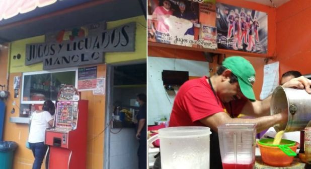 Jugos y Licuados Manolo, o Jugos de Vendrell, tiene servicio las 24 horas del día, y se ha convertido en un punto de referencia para personas de todos los horarios: desde los madrugadores que buscan un desayuno fresco hasta quienes salen en la madrugada en busca de un bocadillo.