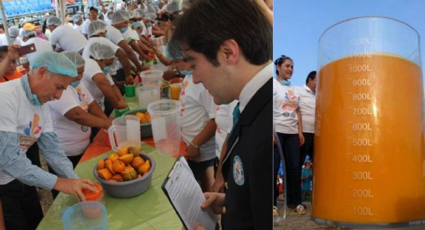 Para este logro se usaron un total de 3,500 kilogramos de naranjas, es decir, 3.5 toneladas de este producto que se da también al norte del suelo veracruzano. La competencia para romper este récord duró al rededor de 51 minutos y el total fue de 1,070 litros, alcanzando así un nuevo récord mundial. La marca a batir eran 500 litros antes de este evento.