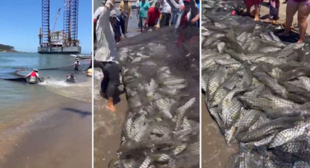 El momento fue capturado en video y se viralizó rápidamente en redes sociales, en donde se puede observar a mujeres y hombres cuando sacan las redes del mar y las arrastran a tierra firme en la zona aledaña al puerto, cerca de la desembocadura de la laguna de Alvarado y aguas del Golfo de México, al concluir su jornada de pesca.