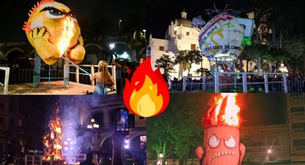 En la celebración del Carnaval 2018, fue una figura de color rojizo con un rostro enojado que representaba al “mal humor” la que terminó consumida por el calor de las llamas en el Zócalo de Veracruz.