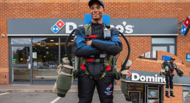 Dicho método considerado como futurista, surgió de la colaboración por parte de Gravity Industries y Domino´s Pizza, junto crearon el traje volador, que le permitierá al repartidor volar de manera segura y mantener las pizzas calientes.