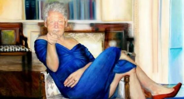 La obra de arte, denominada "Parsing Bill", fue pintada y vendida por la artista australiana Petrina Ryan-Kleid. En la pintura, el expresidente de Estados Unidos aparece recostado en un sillón en la Oficina Oval, llevando un vestido azul similar a la infame prenda de Monica Lewinsky o al vestido que Hillary Clinton, se puso para la gala de los Kennedy Center Honors en 2009.