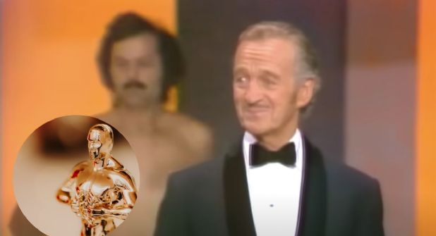 El actor David Niven se encontraba hablando al micrófono para invitar en ese entonces a Elizabeth Taylor al escenario para que junto a ella se develara quién era el ganador de la categoría a "Mejor Película", pero durante su speech, Nieven narraba acerca del por qué darle foco a este tipo de contenido en el mundo del entretenimiento era importante, sin embargo, antes de terminar su discurso, por detrás de él apareció un hombre corriendo desnudo.