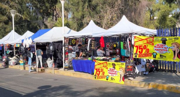 Este peculiar mercado ha ganado popularidad porque ofrece una oportunidad única: adquirir mercancía como playeras, sudaderas, chamarras, posters, calcomanías, cobijas y muchos más que no se vendió durante los conciertos del año a precios considerablemente más bajos.