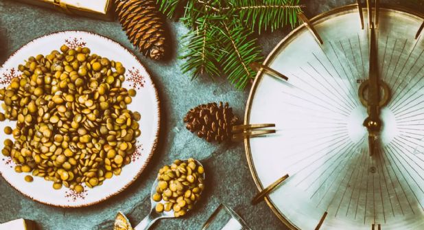 Arrojar lentejas a la medianoche: Las lentejas representan abundancia y estabilidad económica. Arrojarlas al suelo cuando inicia el año simboliza que no faltará el dinero.