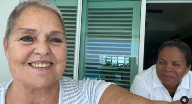 En el clip, aparece junto a una mujer que aparentemente es su enfermera, quien la acompaña en este periodo de descanso.