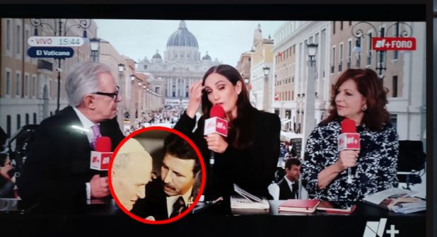 El periodista se notaba incluso nervioso y buscaba intercambiar opiniones siempre con Valentina Alazraki, quien estaba junto a él en la mesa de transmisiones y que es una década del periodismo en el Vaticano.