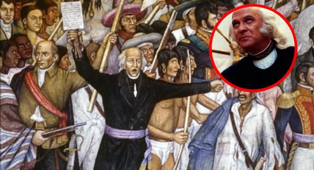 "Nosotros somos los verdaderos dueños de esta tierra", grita Miguel Hidalgo y Costilla, o mejor dicho: el actor Juan Pelaez carcaterizado de Miguel Hidalgo y Costilla.
