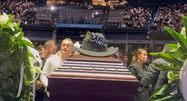 El escenario, dispuesto con sobriedad y respeto, no solo albergó el féretro del cantante, también los de las otras cinco personas que perdieron la vida en el accidente aéreo ocurrido el pasado 10 de enero, en un gesto simbólico de unidad y solidaridad ante la tragedia.
