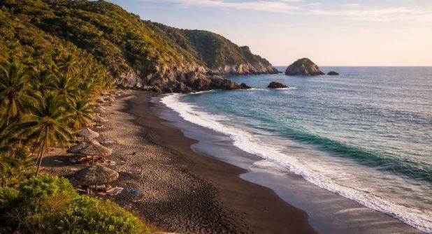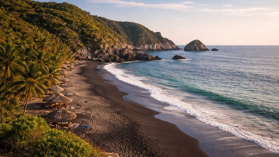 Si para esta Semana Santa 2026 buscas un refugio de paz total y una experiencia fuera de lo común, la Playa Mermejita, en el estado de Oaxaca, es la opción ideal para renovarse. Este rincón destaca por su singular belleza y su peculiar arena negra magnética, la cual ofrece un espectáculo visual único al contrastar con el azul del agua.
