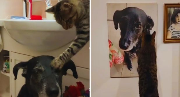 Las redes sociales nos sorprenden nuevamente con un video que conmueve. En esta ocasión, un gatito acaricia la foto de su hermano perro fallecido. Al ver la expresión de tristeza en los ojos del pequeño felino, es imposible contener las lágrimas; pues parece recordar con cariño a su compañero de juegos y travesuras.