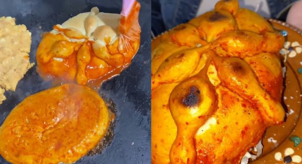 La creación fue del restaurante Antojitos Muy Vargas, quienes han hecho volar su imaginación con otros curiosos platillos como el “soquesito” (un sope relleno de queso) y el “pambalentín” (un pambazo doble con forma de corazón).