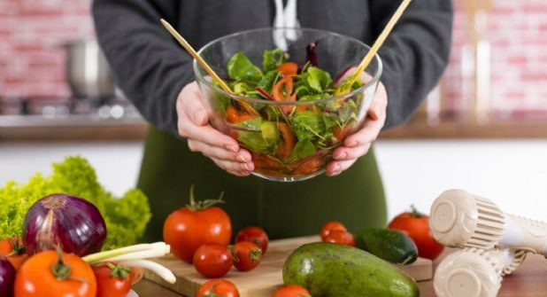 - Acomoda en una ensaladera las verduras salteadas, para, posteriormente, acompañarlos de los cubos de queso, así como con las rebanadas de huevo