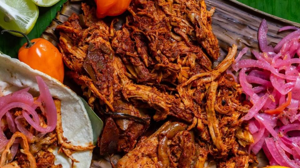 Generalmente, este platillo se asocia con celebraciones y rituales mayas, y su nombre proviene del término “pib”, que significa “enterrado”, en alusión a la cocción en horno bajo tierra. Hoy en día, la cochinita pibil se disfruta en tacos o tortas, acompañada de cebolla morada curtida y salsa de chile habanero.