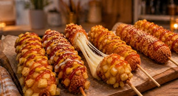Las banderillas coreanas se han convertido en el fenómeno gastronómico favorito de las redes sociales, gracias a su combinación irresistible de texturas y ese característico hilo de queso derretido al primer mordisco. A diferencia de la versión clásica, estas joyas se distinguen por su cobertura ultra crujiente, que puede incluir desde papas fritas hasta cereales, logrando un festín de sabor salado que conquista a cualquiera.
